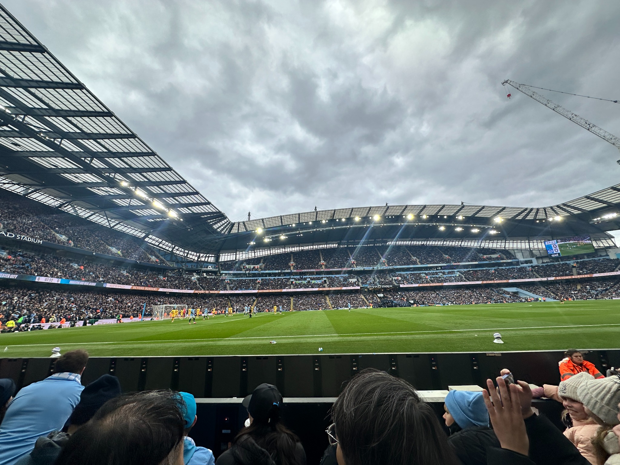 そして、春休みの間イギリスでサッカー観戦に行きました。私は、マンチェスターという町でマンチェスター・シティとブライトンの試合を見ました。会場に向かう電車や駅は観戦に行く人でいっぱいで電車も2回ほど見送り3つ目の電車でようやく乗ることができました。会場には荷物を持ち込むことができず荷物を預けなければなりませんでした。また、グッズ販売所とは別に個人的にチームのマフラーやタオルをその場で交渉して売っている人も見かけるました。シティのホームのエティハドスタジアムで、席もシティ側でしたが、ブライトンのファンの声もよく聞こえました。シティサイドでは誰かがCome on, City! と言うと瞬く間にシティサポーターたちが同じように繰り返し、サッカー観戦の雰囲気を味わうことができました。
