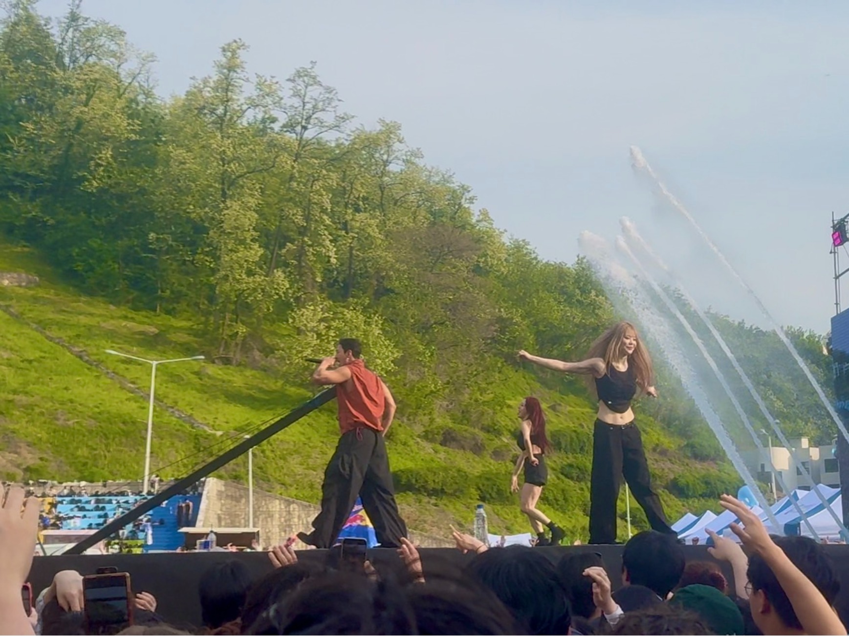 そして語学堂の修了式とともに学園祭(ウォーターフェス)がありました。舞台の横には巨大なウォータースライダーとウォーターバズーカーも設置されていました。みんな青い洋服を着て水鉄砲も持ち、ずぶ濡れになりながら楽しみました。様々なアーティストが来ており有名なアーティストも来ていたので学園祭に参加できてよかったと思いました。学長のスピーチもあり、とても盛り上がっていました。