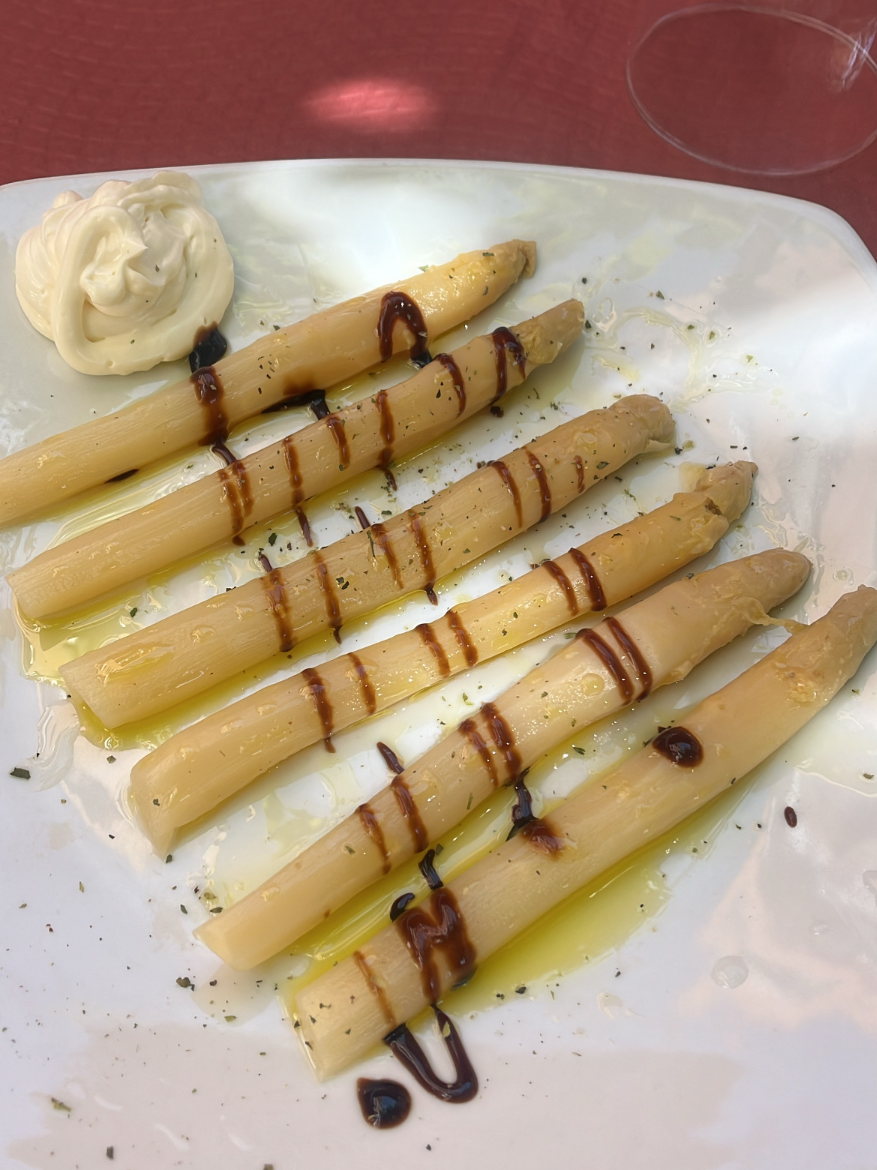 5月17日には、学校の遠足でブルゴスとリオハを訪れました。ブルゴスはカテドラルがすごく綺麗でレオンといつも比較されるそうです。内部の細かさにすごく感動しました。個人的にはリオハの広大なブドウ畑がとてもお気に入りで、空間の広がりから自由を感じました。リオハではワイナリーを訪問し、ワインの製造工程について学ぶことができました。また、リオハの名物の白アスパラガスを初めていただきました。私は、緑のアスパラしか知らなかったため、白いアスパラガスの存在に驚きました。逆にドイツ人の友人は緑のアスパラガスの存在を知りませんでした。食べてみると味は緑のアスパラガスと似ていました。