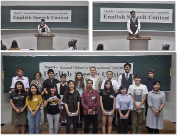 最優秀賞は、「Children and English」という題でスピーチをした前川 南さん(首里高校出身/英米言語文化学科2年)でした。前川さんは表現力豊かなスピーチで会場を魅了し、特別賞も獲得しました。優秀賞は、デイビス・タイリックさん(中部商業高校出身/英米言語文化学科1年)、優良賞は、新里マリア桂子さん(英米言語文化学科2年)、奨励賞は、天願 早さん(宮古高校出身/英米言語文化学科1年)でした。