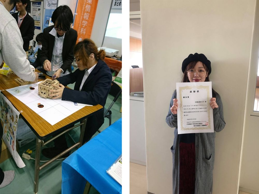 IT津梁まつりでは「学生によるプレゼン大会」も開催しており、安里ゼミの学生による「沖縄県民向け観光情報サイトの構築」のプレゼンテーションは審査員の高い評価を受けて優良賞(三位)を頂きました。