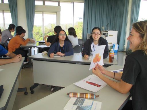 まず沖縄国際大学東村セミナーハウスですが、眺めがすごくよく素晴らしい環境のもとでフランス語を学べます。フランス語が上手に話せないと不安はありましたが合宿中は先生や留学生の方たちが丁寧に教えてくれ友達と申し込まなくともグループワークをする事によりこの合宿で友達が出来ます!合宿では勉強だけじゃなく、参加者みんなで遊んだり、食事ととったりとコミュニケーションを取りながらフランス語を勉強していく本当に素晴らしい充実した合宿でした。是非興味がある方は次回参加してみてください。