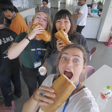 色んな食べ物を食べました。お弁当や夕ご飯には鍋、そしてみんなでフランス風サンドイッチを作りました。美味しかったです。