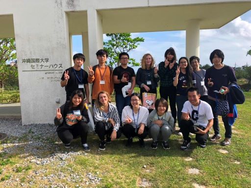 「沖縄国際大学東村セミナーハウス前にて集合写真」