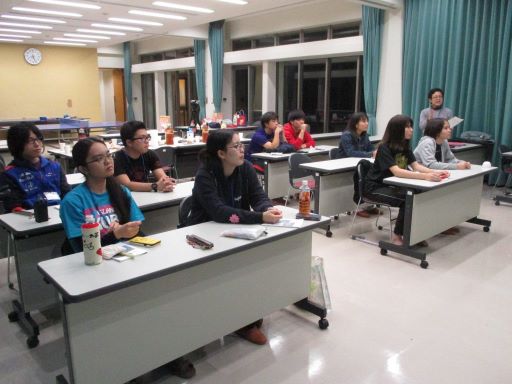 セミナーハウス到着後は単語トレーニングや、今回合宿へ参加してくれた留学生2人からの発音や言い回しを学ぶという日頃中々ない貴重な体験に参加学生も熱心に取り組んでいました。