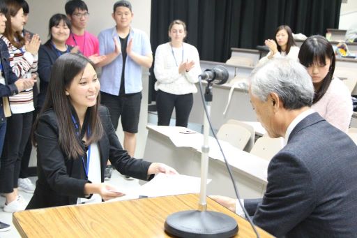 テーマを考えること、それを外国語である日本語で文書にまとめること、書いたものを覚えること、表現力をもってスピーチすること、それぞれの段階で苦労と工夫があったと思います。
