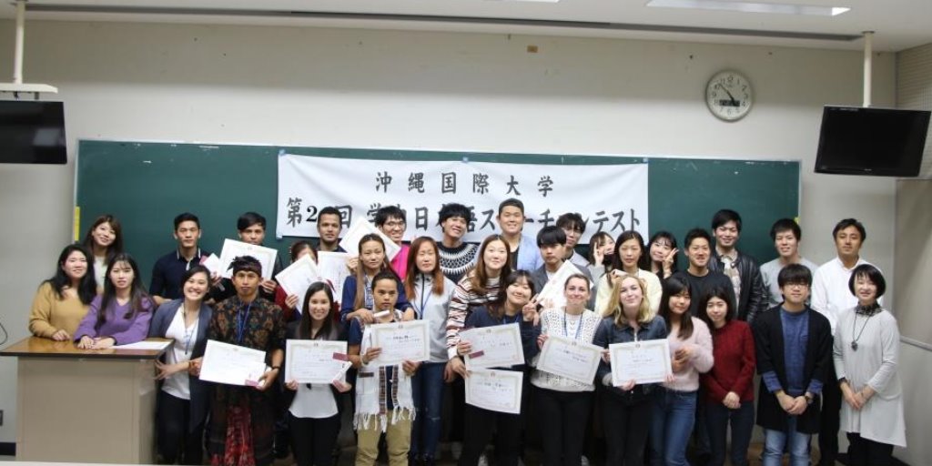 2018年12月14日(金)、本学にて「第24回 学内日本語スピーチコンテスト」が行われました。同コンテストは沖縄国際大学の学部留学生や、日本語を勉強している交換留学生、県費留学生、科目等履修生たち総勢30名が出場し日本語による表現能力等を競いました。