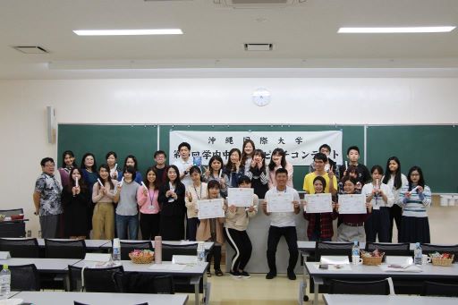 2位は、西千裕さん(日本文化学科2年)。3位は、島袋真七さん(日本文化学科2年)。特別賞は、玉城日菜乃さん(日本文化学科2年)。奨励賞は、小谷瑠那さん(英米言語文化学科2年)。特別審査員賞は、野原克洋さん(地域行政学科3年)でした。