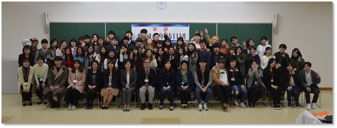 今回、本学を訪問した「韓国青年訪日団」は、在釜山日本総領事館および在済州日本総領事館にて選抜された、発信力のある大学生34名で、「日本の地方の魅力発見と地産地消」のテーマのもと、各訪問地域でホームステイや、文化体験、学校訪問等を通して、日本の同世代と交流するなかで、日韓の相互理解と信頼関係の増進に寄与することを目的として訪日しました。