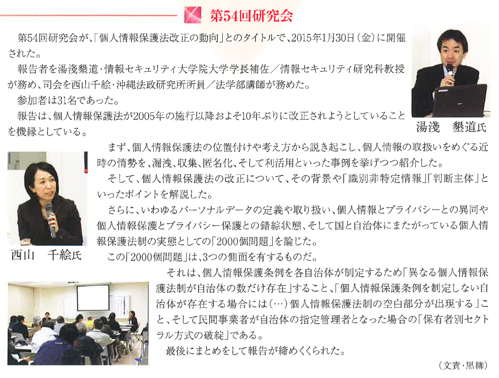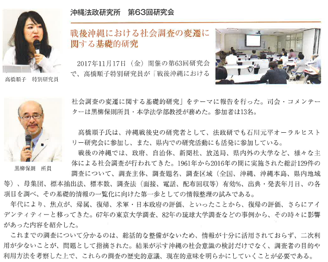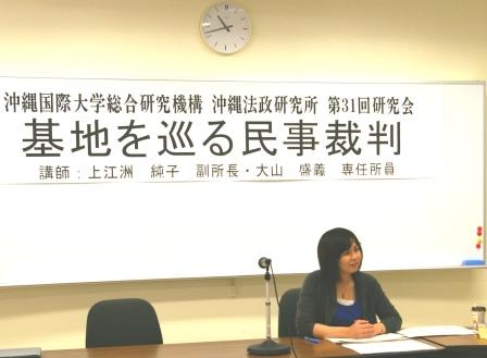 ![]() 報告者:西山千絵 (沖縄法政研究所所員/沖縄国際大学法学部講師) | ![]() 司会:井端正幸 (沖縄法政研究所所員/沖縄国際大学法学部教授) | ![]() |