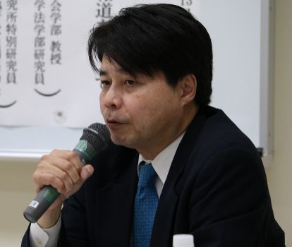 ![]() 報告:伊藤栄寿 氏 (上智大学法科大学院教授) | ![]() 司会・報告:清水太郎 氏 (沖縄法政研究所特別研究員/清和大学法学部准教授) |