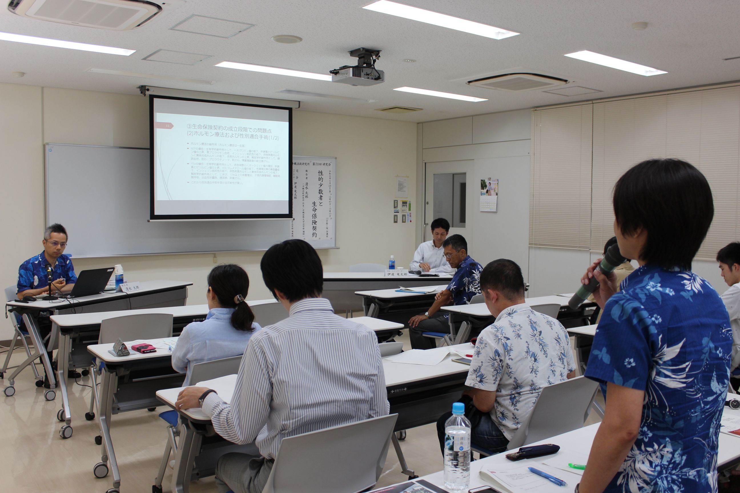 ![]() 報告:真喜屋美樹 氏 (沖縄法政研究所特別研究員/沖縄工業高等専門学校基盤教育科特命准教授) | ![]() 司会:佐藤学 (沖縄法政研究所所員/沖縄国際大学法学部教授) |