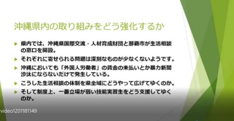 ![]() 報告:前泊美紀 氏 (沖縄法政研究所特別研究員/元那覇市議会議員) | ![]() 司会・コメンテーター:佐藤学 (沖縄法政研究所所員/沖縄国際大学法学部教授) |