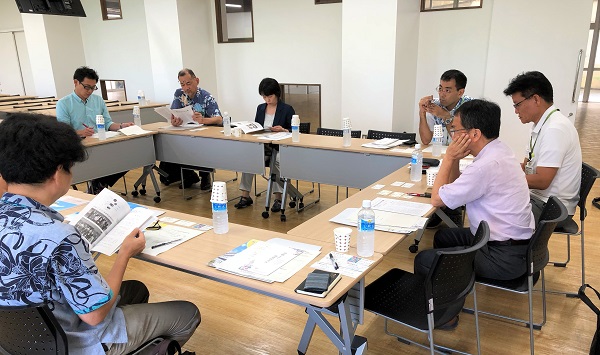 座長である沖縄大学地域研究所 島村聡所長の開催の挨拶で始まり、それぞれの研究所から昨年度及び、本年度の主な事業が紹介されました。その後、沖縄県立芸術大学附属研究所から、沖縄学研究機関共催のシンポジウムを開催する提案が出され、意見を交換しました。会場である沖縄大学地域共創センターの見学も行いました。