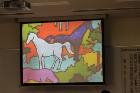 今回は、自動車フロントガラスの中間膜廃材の再生利用で生まれた絵の具ディンプルアートの開発の歩みやその特徴について講演して頂きました。