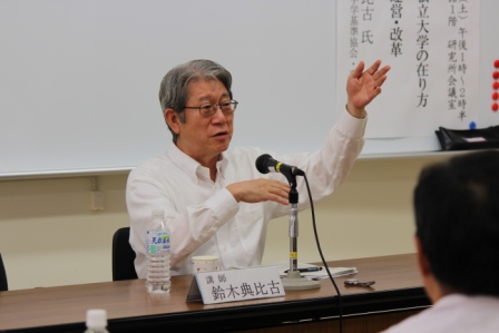 産業総合研究所は8月11日(土)、13号館1階研究所会議室において、平成24年度第1回研究会を(公)大学基準協会・専務理事の鈴木典比古氏を講師にお招きして開催致しました。