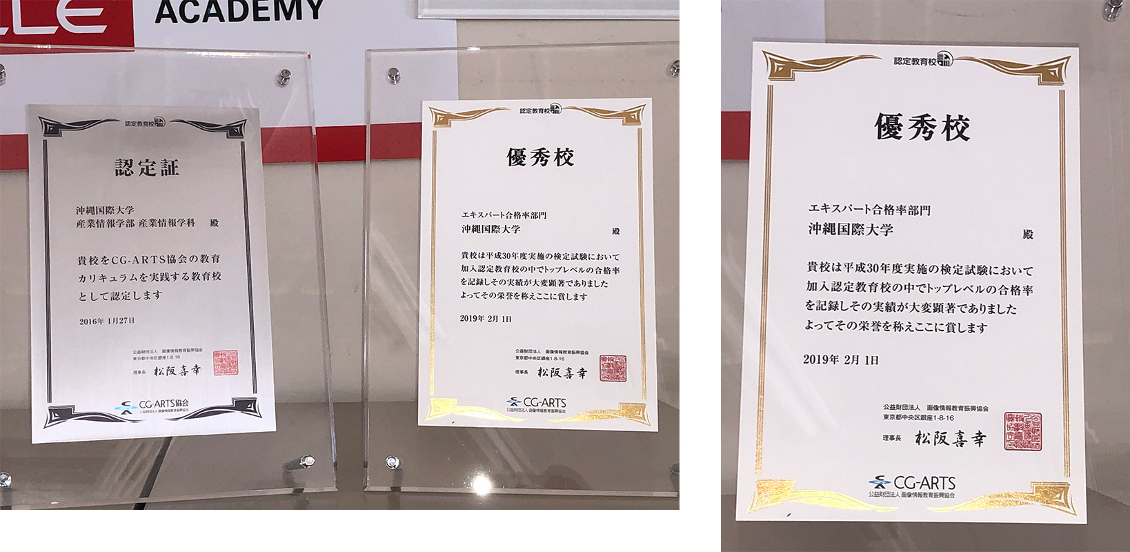 平成30年度実施の検定試験にて、沖縄国際大学は加入認定教育校の中でエキスパート部門においてトップレベルの合格率を記録しました。その実績が大変顕著であるとして優秀校として表彰されました。