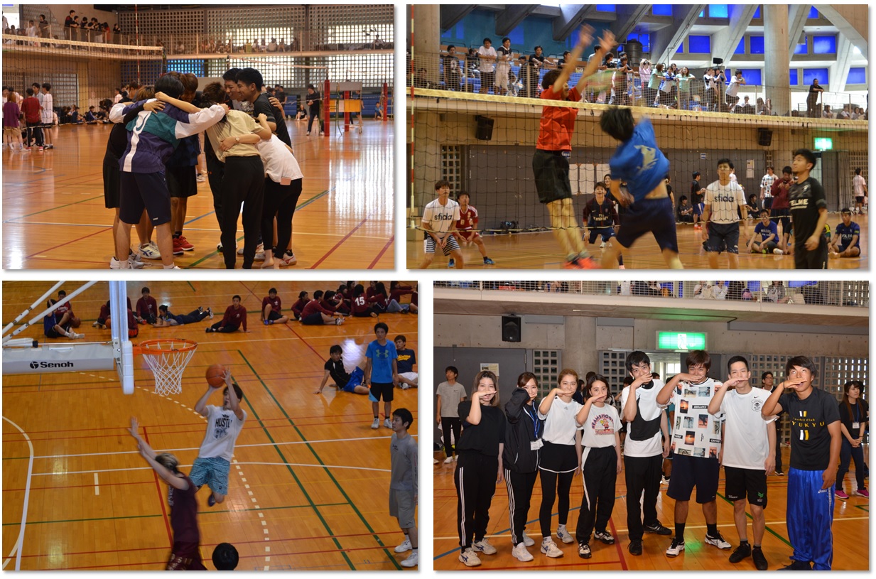 今年は本学体育館が工事中のため、浦添市民体育館をおかりしてバレーボールとバスケットボール(3on3)が行われました。