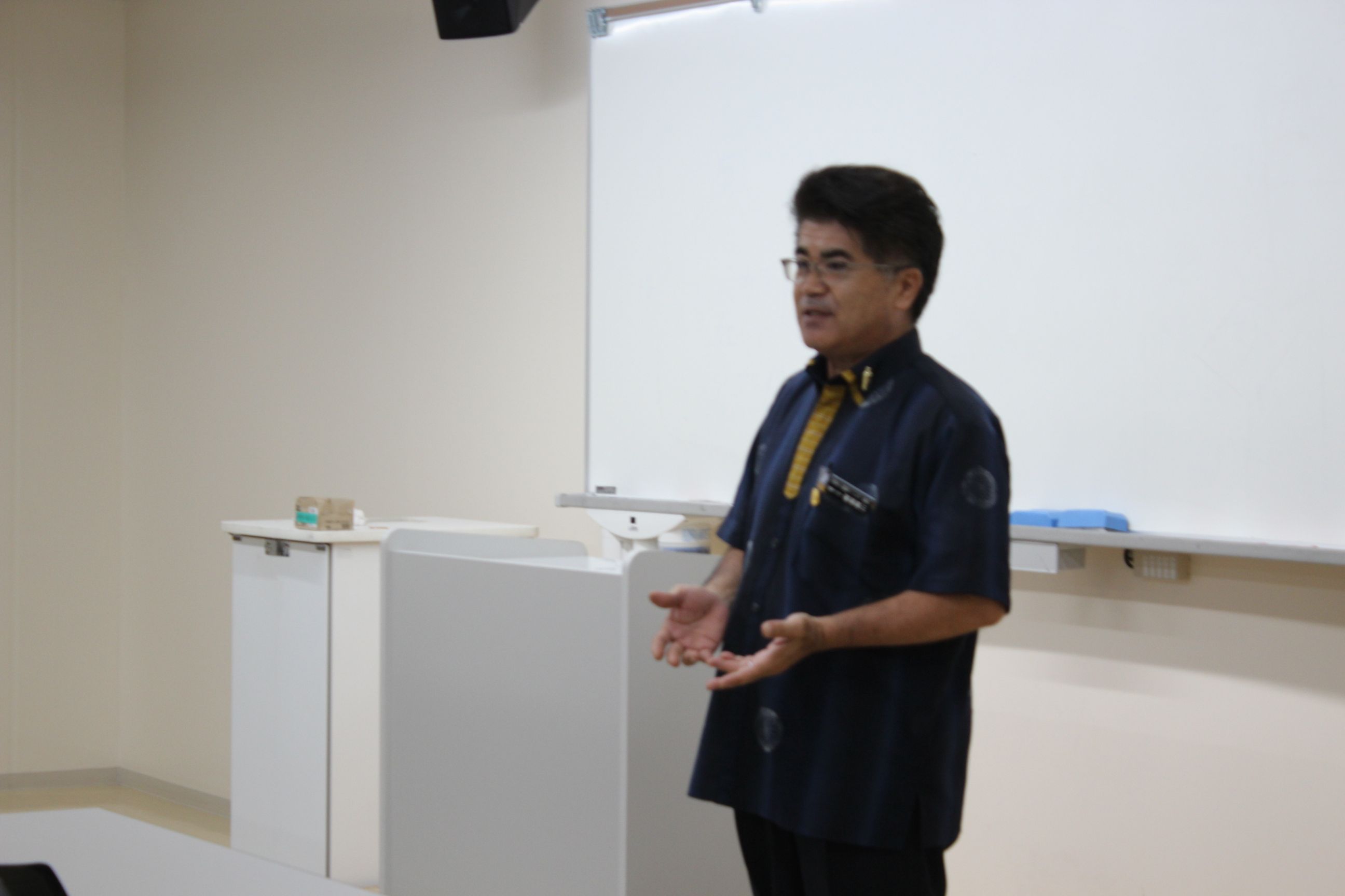 最終講義では修了式が行われ、沖縄経済環境研究所 前泊博盛所長より挨拶と修了証書授与、泡盛マイスター協会の喜瀬真三氏より御挨拶を頂きました。