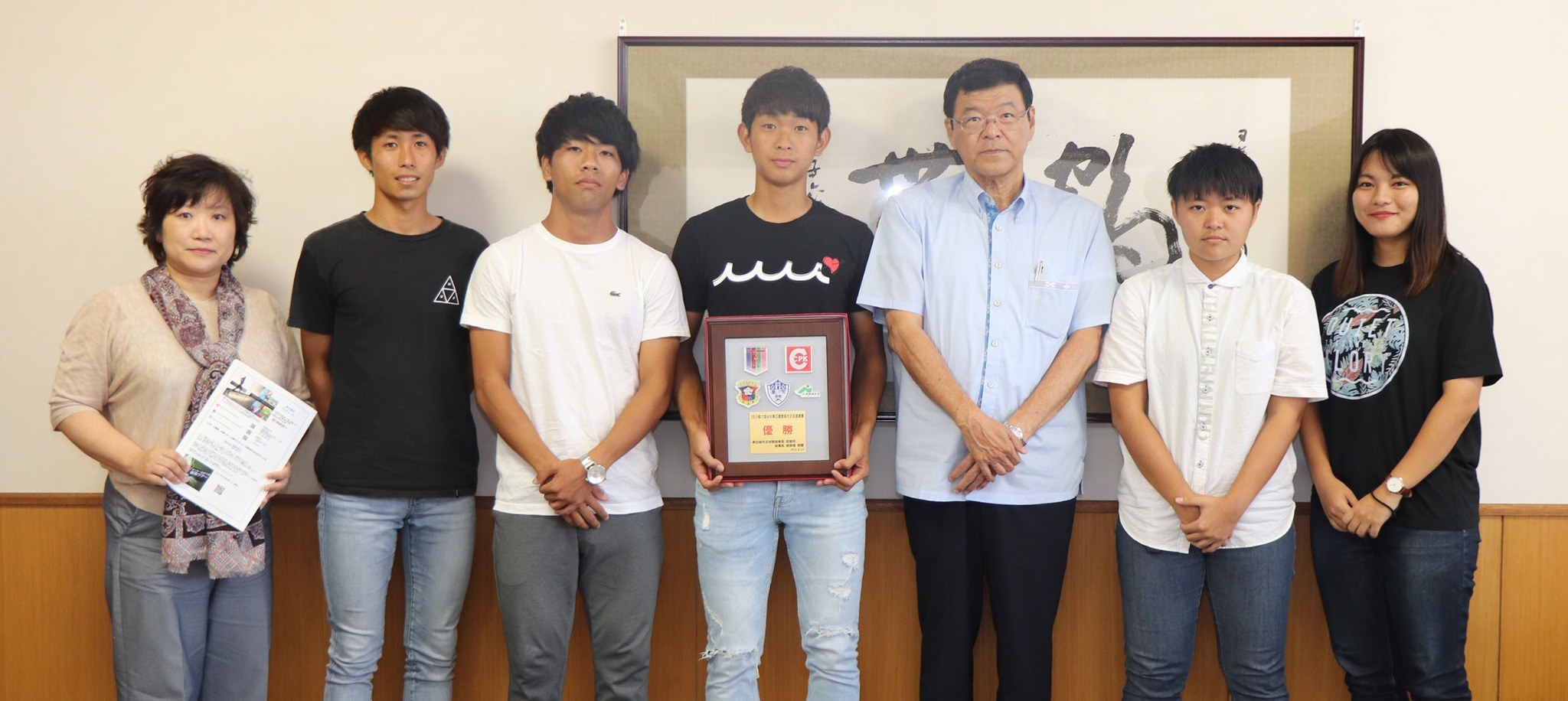 沖縄国際大学サッカー部(男子サッカー部と女子サッカー部)は、先日、今年度の活動を報告すべく学長を表敬しました。