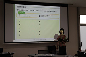 前半は、社会人にとして経済的自立に必要な家計管理に関連する内容でした。本学の学生は大半が自宅通学者でありますが、社会人になれば転勤により家計管理が必要な場合があります。その際に役立てるような内容でした。後半は、昨今の若者に生じている金銭トラブルの実状をお話しいただきました。名義貸しやワンクリック詐欺などの実例を取り上げるとともに、「困ったときに、相談すること」、「即答はしないこと」などのトラブル解決法もご教示いただきました。