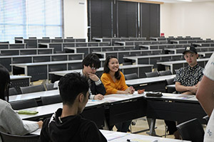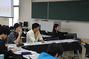 キャリア・デザイン(担当:村上了太経済学科教授)は、前後期に同じ科目を開講しております。15回の講義のうち、3-4回は県内外の企業担当者をお呼びして、「働く」を中心としたテーマで講義やグループワークを行っております。社会人講師の一環として、11月11日に、SMBCコンシューマーファイナンス株式会社から酒井千鶴氏が2つのテーマで講義いただきました。また、前田崇行氏による講義のお手伝いもいただきました。