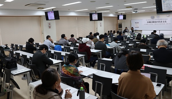 南島文化研究所では、第41回 南島文化市民講座/2019年度協定校間国際学術交流講演会「沖縄と韓国の若者文化」を開催しました。天気の悪いにもかかわらず、学内、学外から多くの方々に参加いただき、質疑応答も活発に行われました。