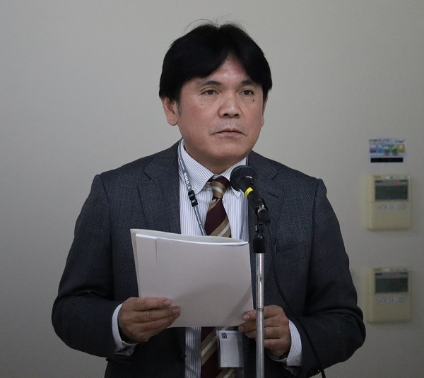 写真3:開会のあいさつを行う崎浜靖所長
