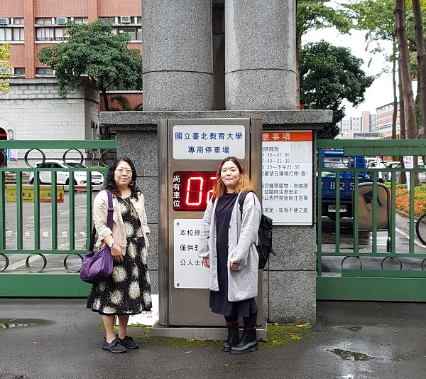 写真3:尚先生、本学卒業生の伊礼さん(2019年11月22日、国立台北教育大学正門前にて)