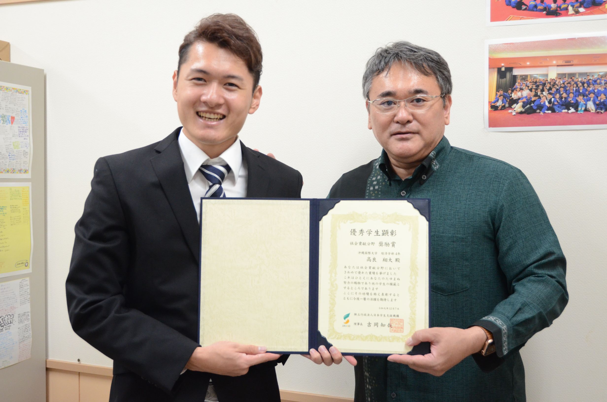 経済学部経済学科4年次の高良翔太さんが、日本学生支援機構優秀学生顕彰の社会貢献分野の奨励賞に選ばれました。
