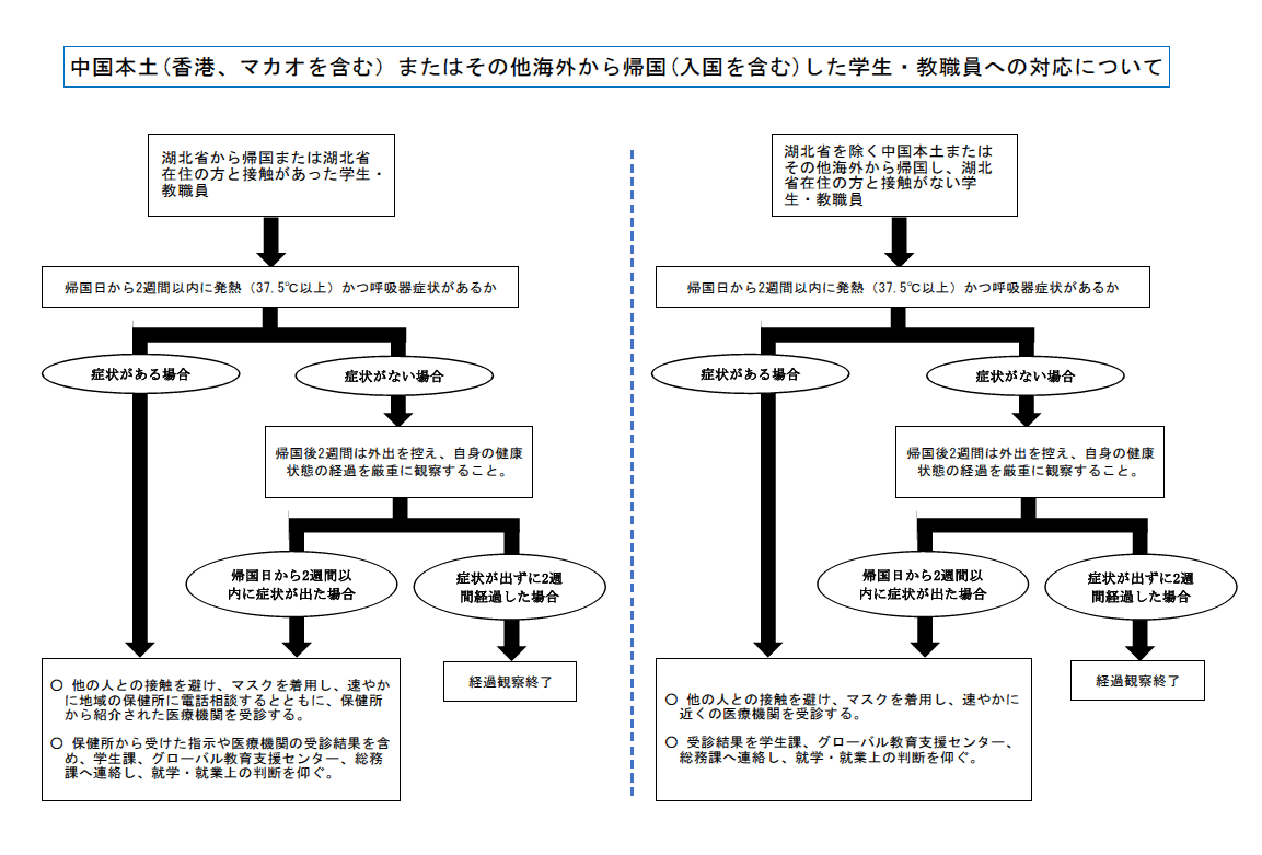 学生・教職員が中国またはその他海外から帰国・入国する場合
