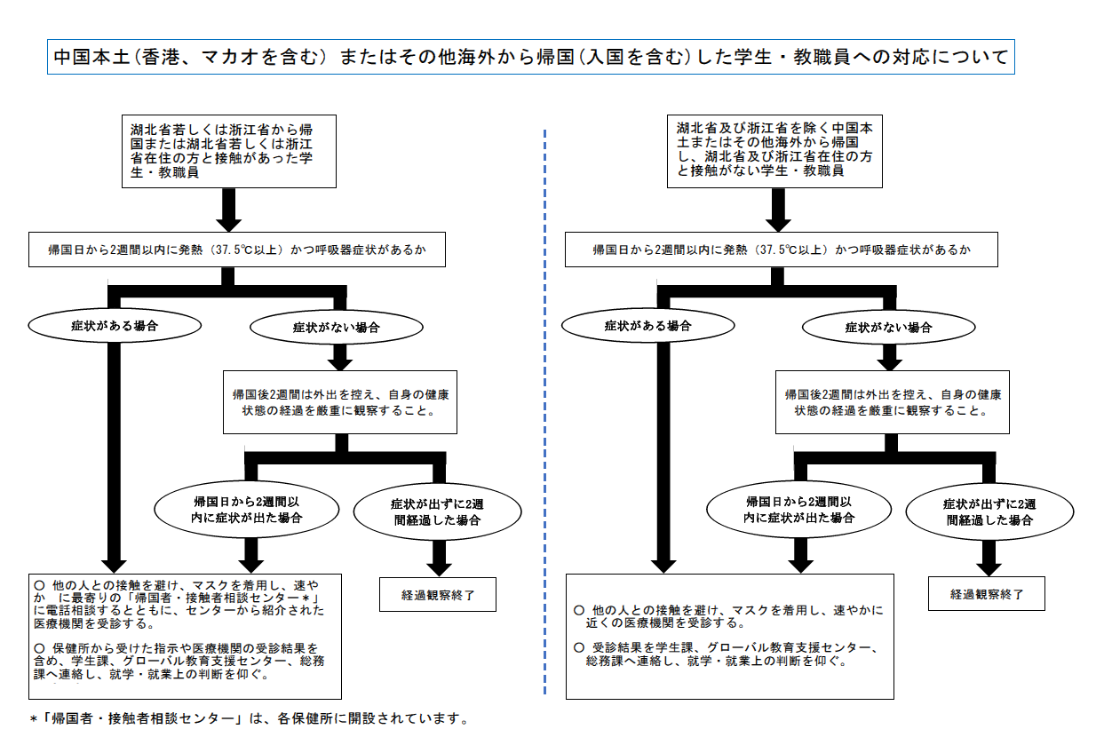学生・教職員が中国またはその他海外から帰国・入国する場合