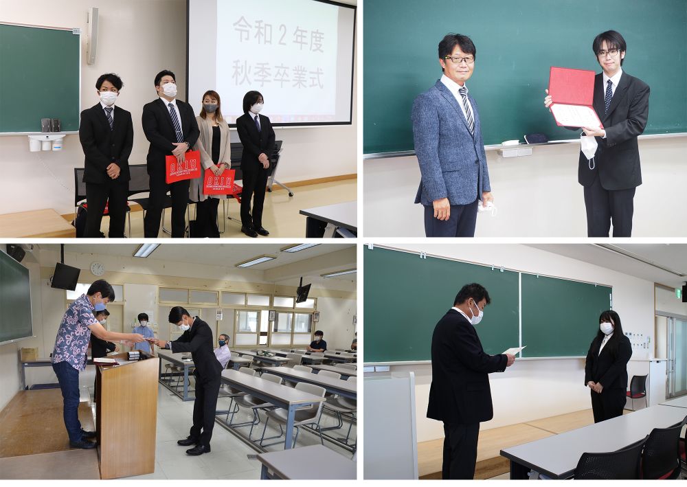 2020年10月9日(金)、各学部において秋季卒業式および特待奨学生証書の交付式を行いました。
