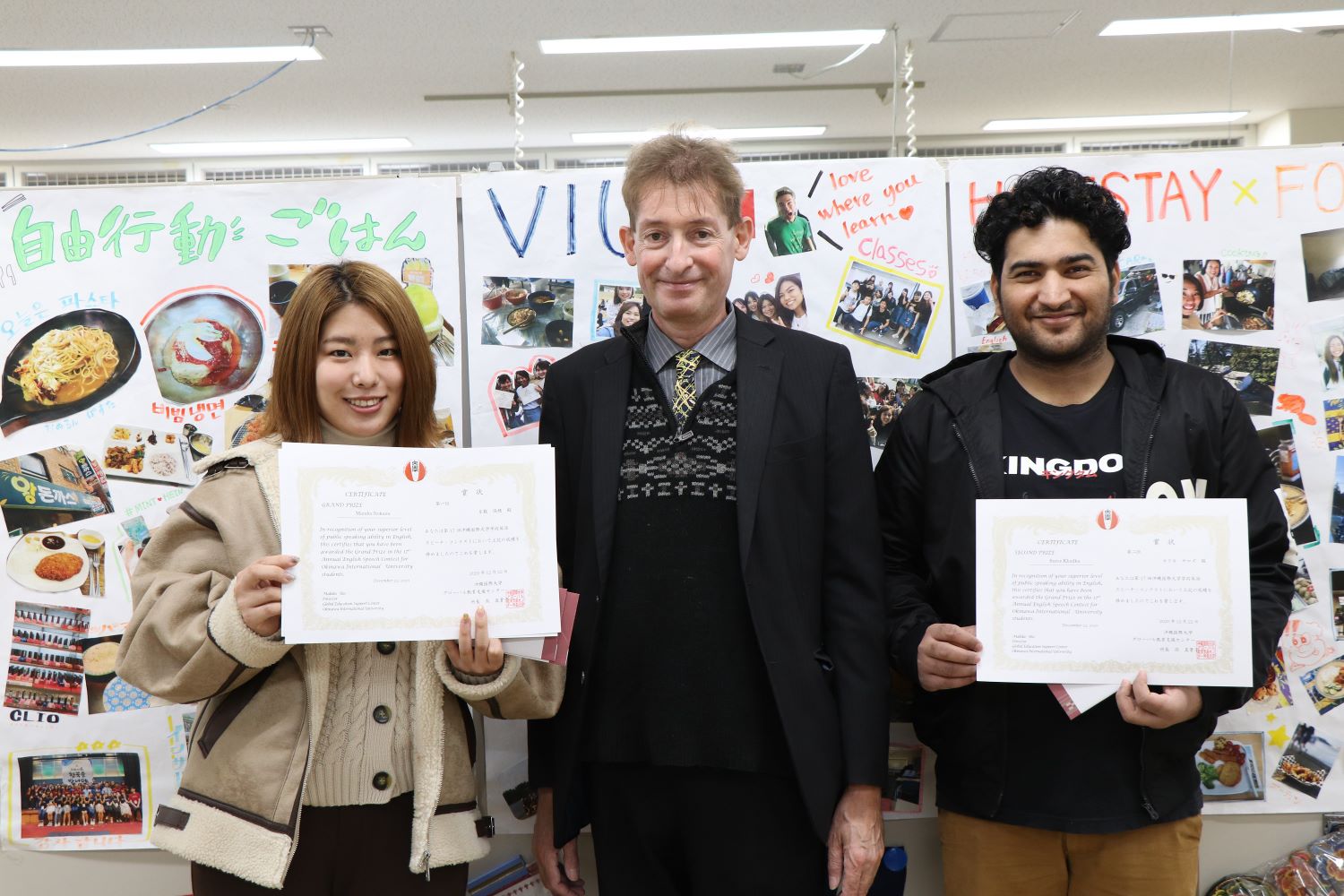 優勝は、「Time with your grandparents」という題でスピーチをした糸数 瑞穂さん(英米言語文化学科3年)、2位は、カドカ サロズさん(英米言語文化学科2年)、会場賞は、糸数瑞穂さん(英米言語文化学科3年)でした。