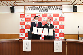 本学は、大学の掲げる使命・目標の一つに「地域協働・産学官連携の推進」を謳っており、この度、一般社団法人東京中小企業家同友会様と産学連携協定を締結する運びとなりました。