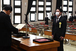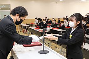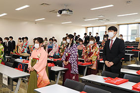 新型コロナウィルス感染拡大に伴い本学では十分な配慮を心掛け、式典を挙行しました。例年のような、体育館での式典ではなく、各学科、大学院に分かれ卒業証書、修了証書の授与式が行われました。