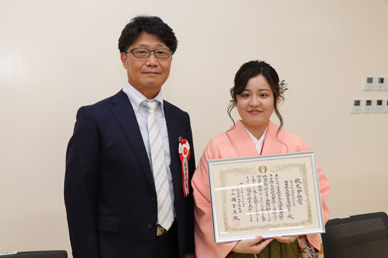【総合文化学部長賞受賞の山口真季さん(日本文化学科)】