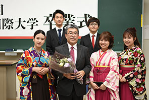 又、学生部長賞に石川勇人さん(社会文化学科)、総合文化学部長賞に山口真季さん(日本文化学科)、城間大希さん(英米言語文化学科)、校友会長賞に呉ゼミ(地域環境政策学科)、松田駿太さん(英米言語文化学科)が表彰されました。