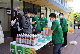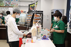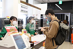 4月7日(水)、本学学生会館1階にコンビニエンスストア(セブンーイレブン沖縄)がオープンしました。開店と同時に多くの学生さんが来店し、店内は賑やかな雰囲気に包まれました。