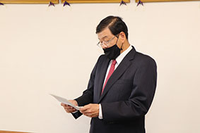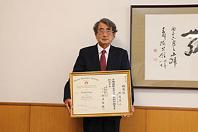 前津榮健学長より称号記が授与され、これまでの教育及び学術の功績に敬意を表するとともに、本学でのご功労に感謝の言葉を述べられました。