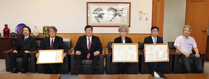 4月16日(金)、本館5階応接室において、3月で退職された下記の先生方へ名誉教授の称号記が授与されました。