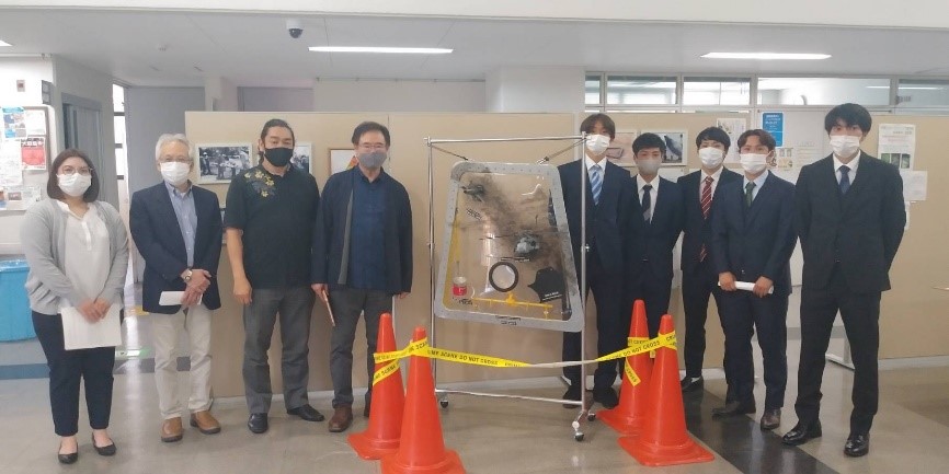 左より研究支援助手、副所長、所長、仲村氏、そして本学学生