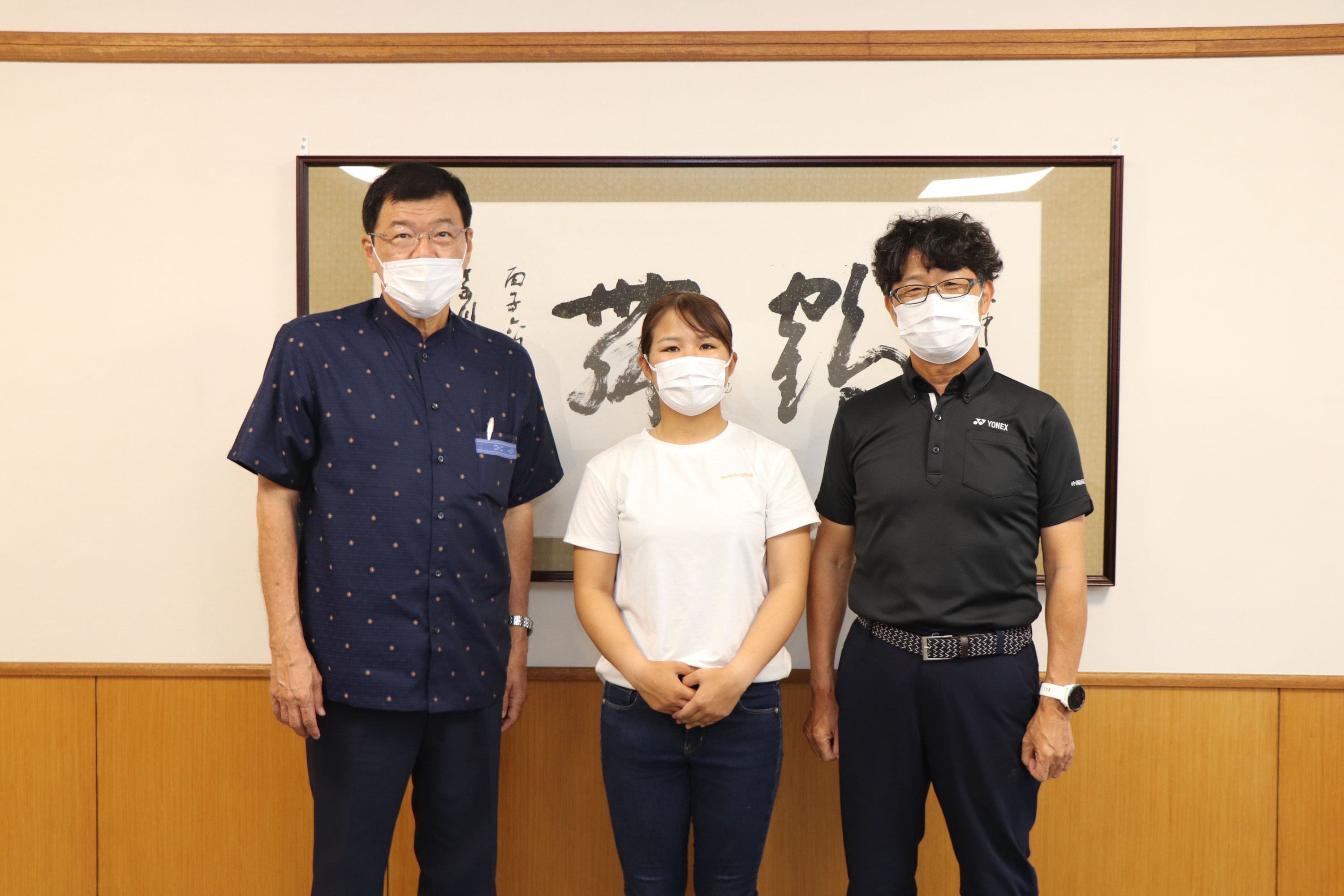 学長からは「九州での移動から大会当日もすべて一人で行い、プレーオフを下しての初優勝はとても素晴らしいです。おめでとうございます。今後の活躍も期待しているので、ぜひ頑張ってください。」と激励の言葉がありました。