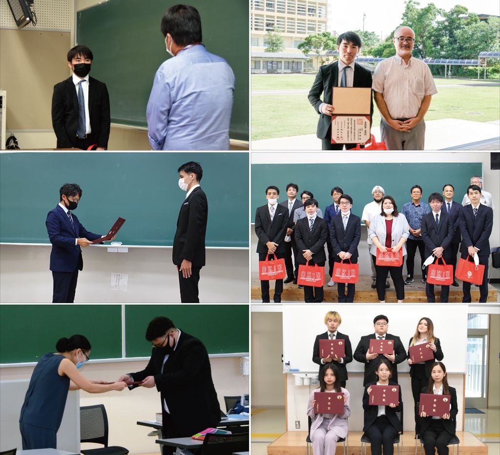 今年は法学部6名、経済学部9名、産業情報学部1名、総合文化学部15名の学部計31名、地域文化研究科4名、地域産業研究科1名の大学院生計5名が卒業・修了認定し、それぞれ新たなステージの一歩を踏み出しました。