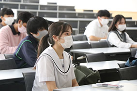7月に行ったオープンキャンパス同様、入口での検温や座席指定をはじめ、新型コロナウイルス感染防止対策を行ったうえで開催しました。
