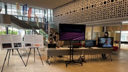 3月19日、20日の2日間、「NHKのど自慢」の会場となった「なはーと」ロビーにてデモ展示を実施しました。多くの来場者が訪れ、実際に操作しながら大ホール内を探索し体験できる機会となりました。今後、様々な機会を通して体験できる場を設けられたらと思います。