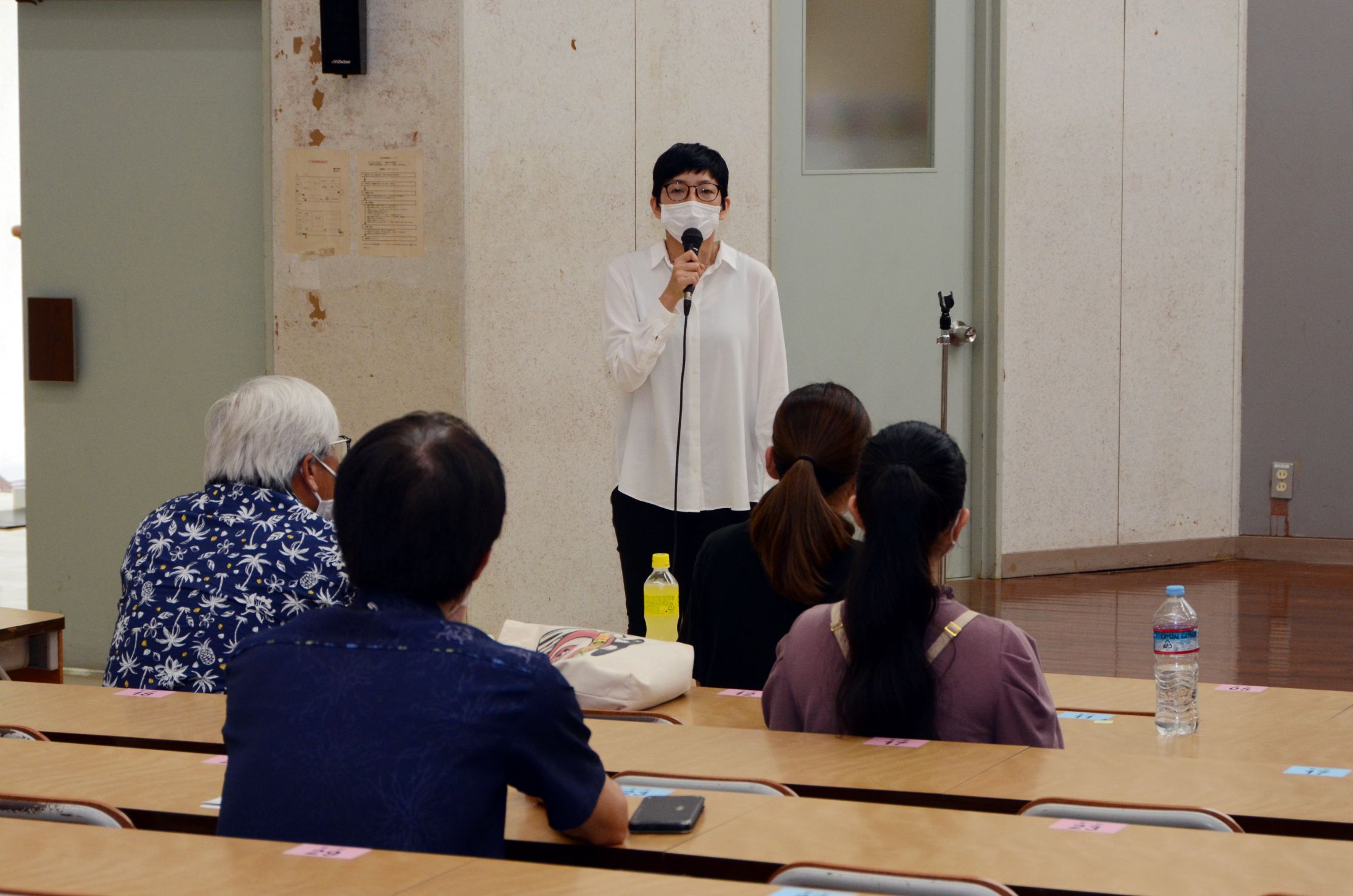 宮平監督は、上映会前の挨拶で「シネマ組踊は、組踊を映像化することで、新しい切り口で映像化するというプロジェクトです。私自身は組踊自体が、古典芸能でありながら今まで触れたことがない世界だったので、本作を通じて初めて見た人にも組踊の魅力をどう伝えるか、玉城朝薫がこの世に存在したとして映像化するとしたらどんな風にみせたいだろうか、ということを念頭に置いて撮りました。生の組踊を見たことがある人も、見たことがない人もぜひ一度見て欲しいです。」と挨拶をされました。