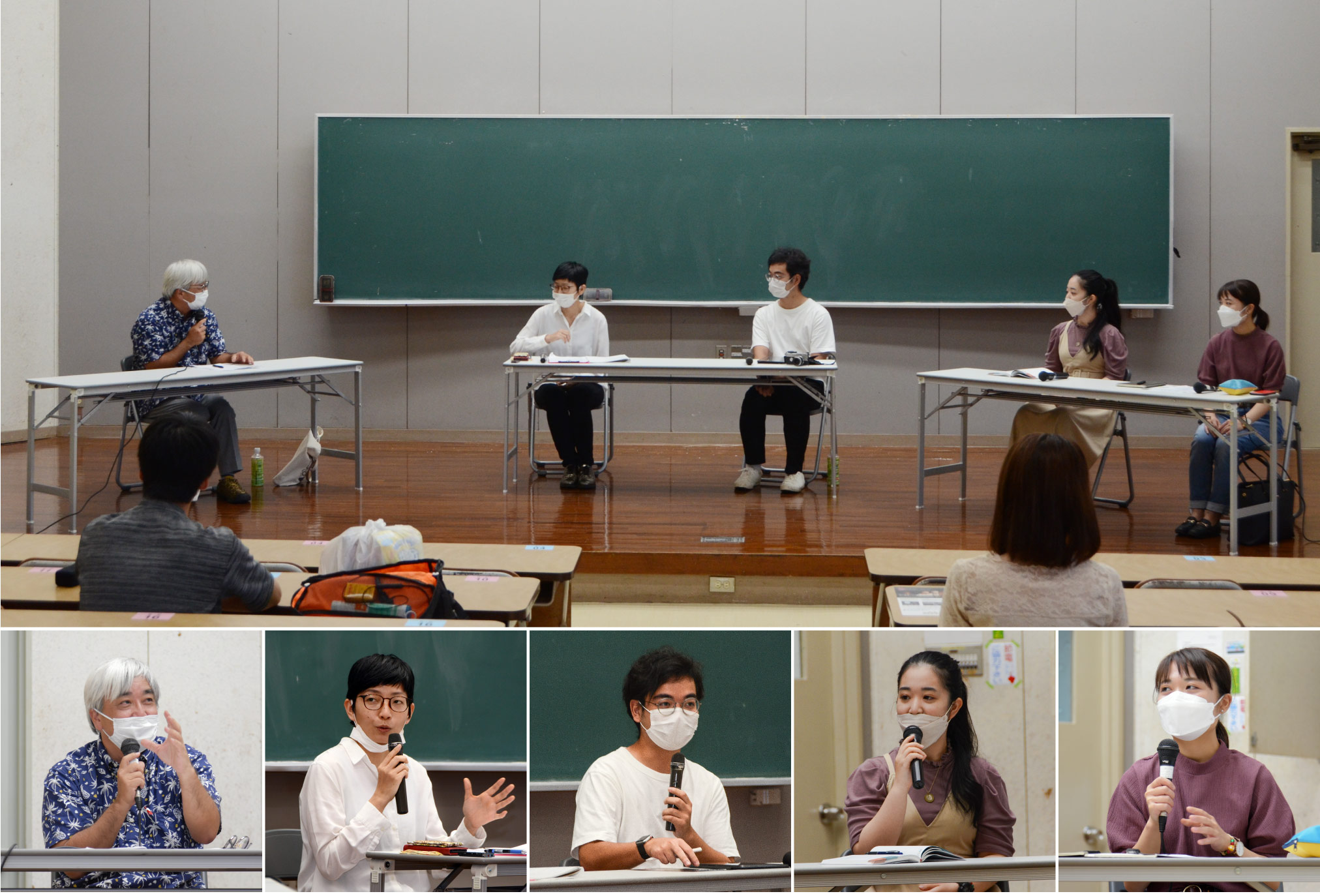 上映会後には、本学経済学部経済学科の浦本寛史先生(芸術学)進行のもと、宮平監督と本学学部生・大学院生によるトークセッションを開催しました。