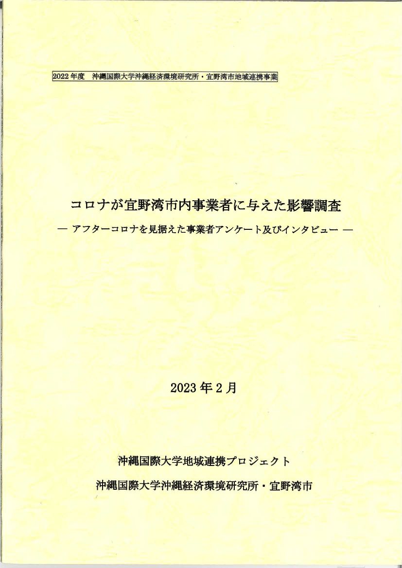 この度、沖縄経済環境研究所は宜野湾市と共同調査を行っている地域連携プロジェクトの報告書『コロナが宜野湾市内事業者に与えた影響調査』を発刊いたしました。