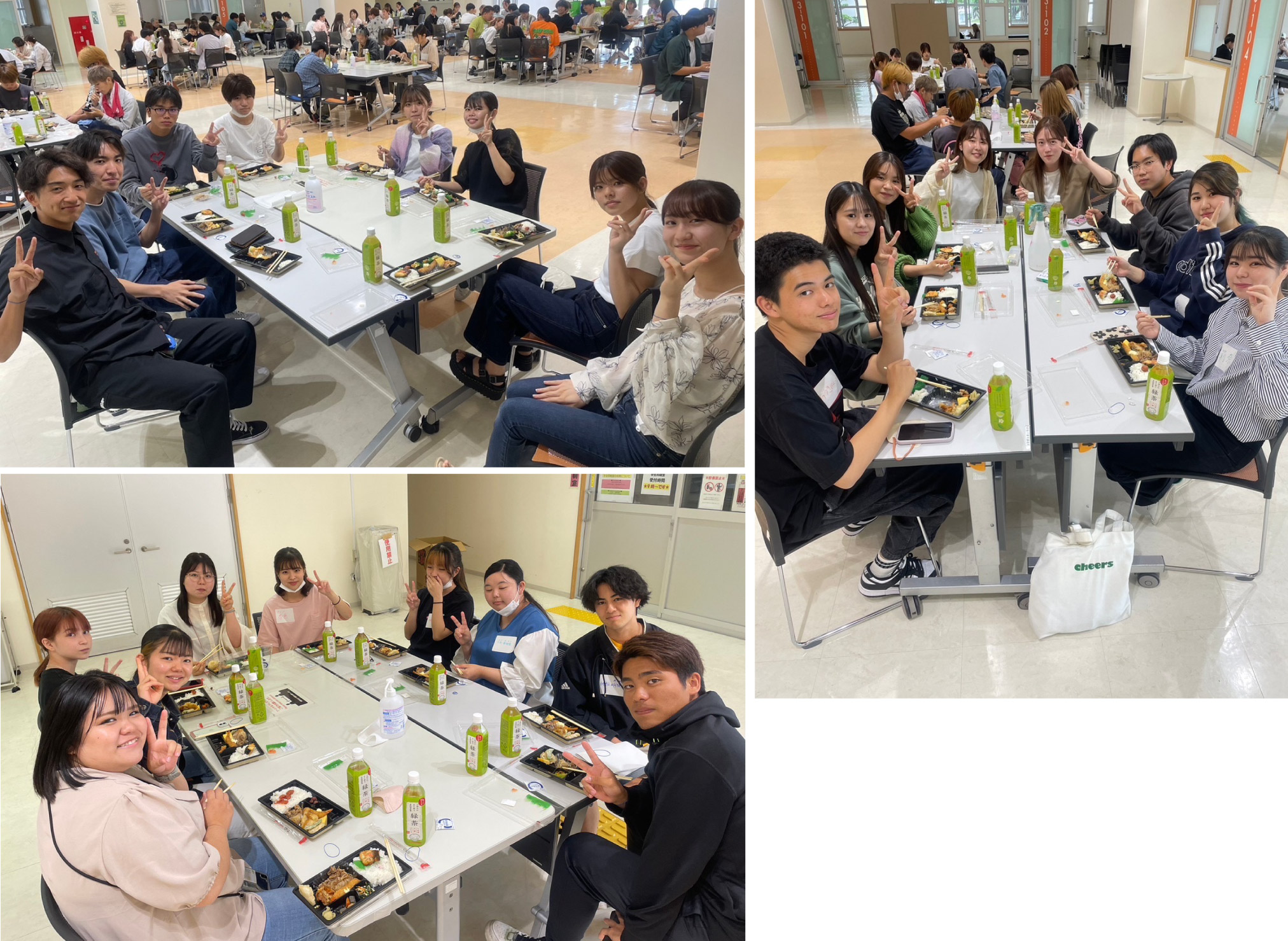 昼食時間は、ほっとひと息、楽しくおしゃべりしながら過ごしました。別々のゼミに所属していて初めてお話しするメンバーどおしでしたが、HUGを体験したからでしょうか、気づけば打ち解けていて、お互いの学生生活を紹介しあったり、先輩から専攻の特徴や1年生のうちにやっておくべきことを教えてもらったりしていました。